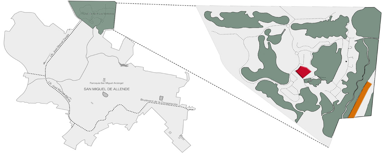 Ubicado a solo 1.5km del corazón de San Miguel de Allende, dentro de un exclusivo campo de golf, el área destinada frente al hoyo 4 del campo Las Ventanas abarca toda una pequeña cordillera perimetral donde se logran unas vistas únicas tanto al campo de golf como al centro histórico de San Miguel.