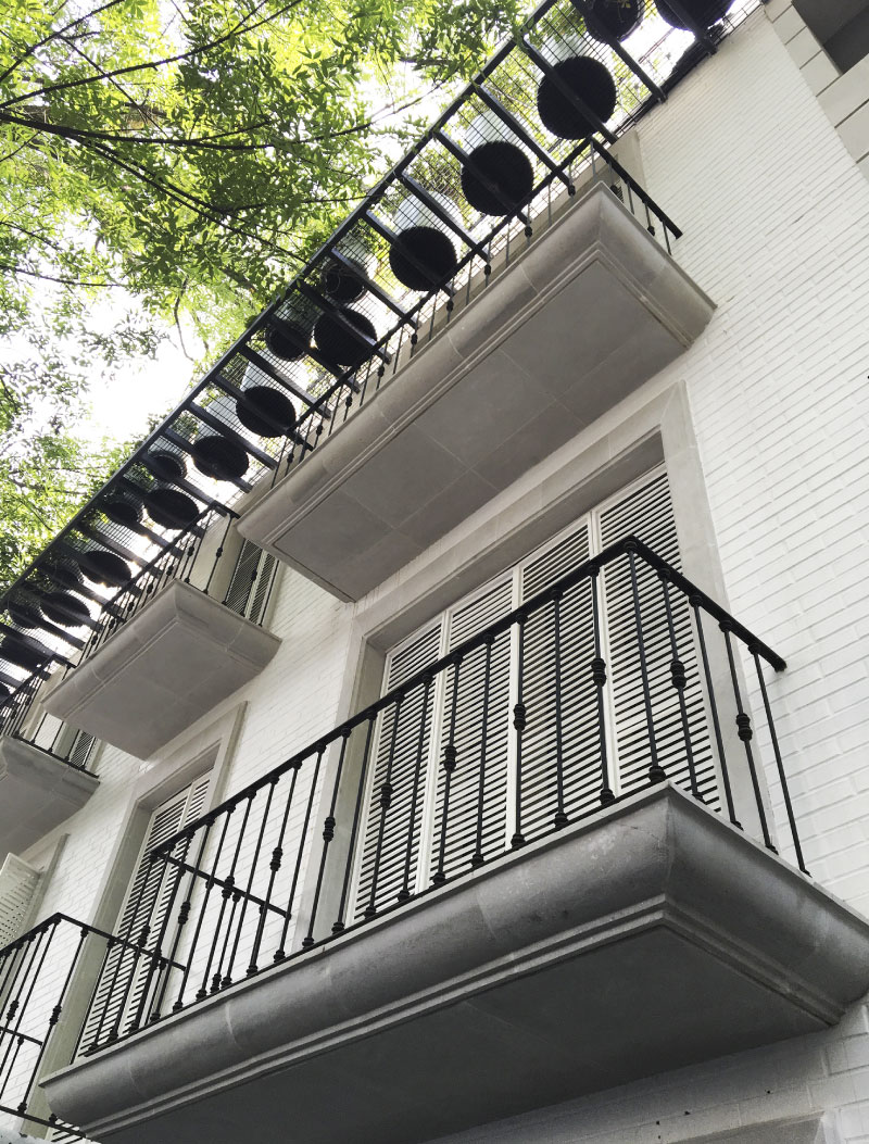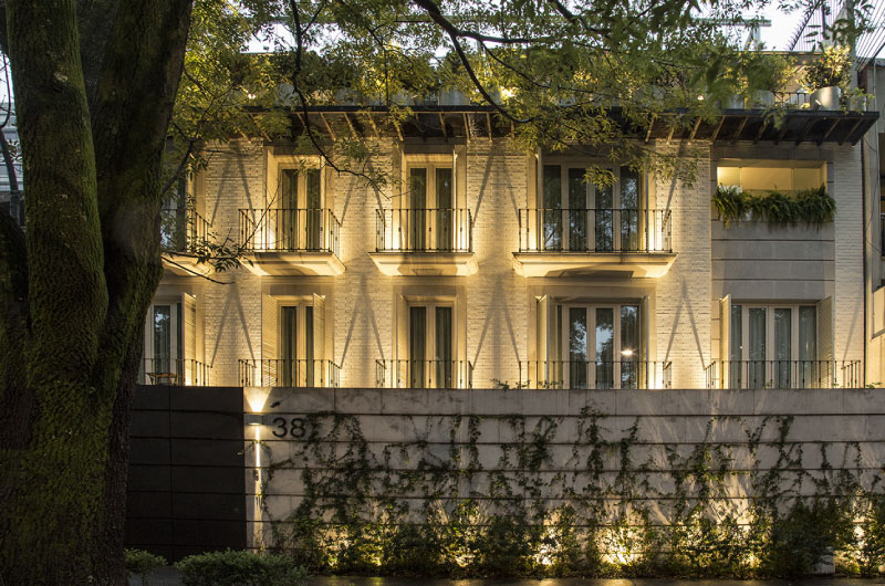 La volumetría y diseño de la fachada cumple con el entorno de Polanco, donde se respetan las proporciones de vanos y macizos, el uso armónico de los materiales y acabados, la orientación e iluminación adecuada. Encontrar ese balance entre una una arquitectura más clásica con algunos elementos contemporáneos fueron el resultado del proyecto. Siendo ya un edificio único en la zona.