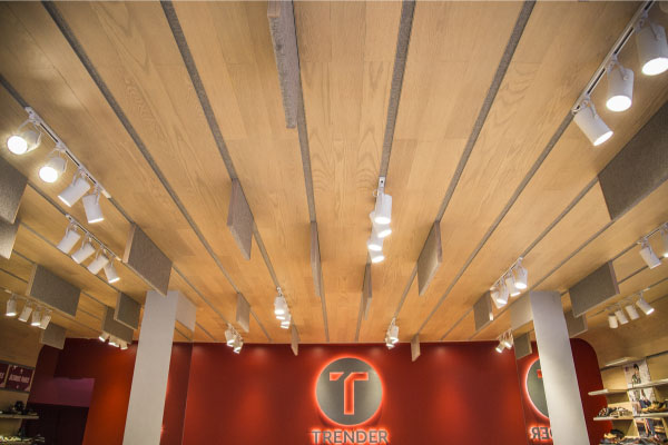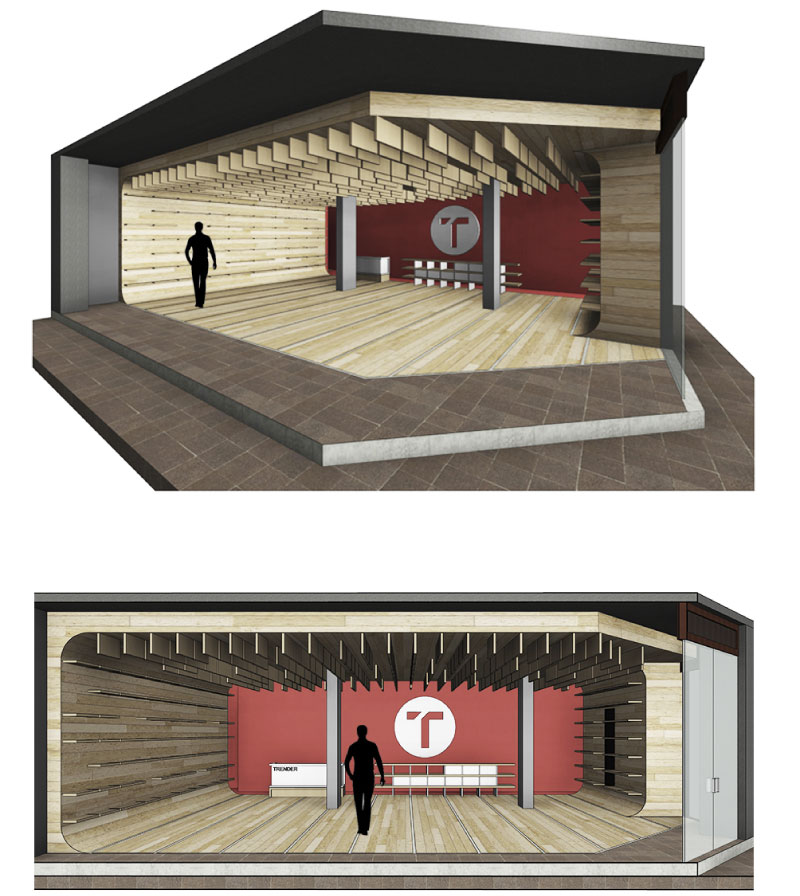 Permeabilidad visual desde las avenidas peatonales como punto fundamental del diseño, trabajar en esquina, donde los ángulos son distintos. Explorar con madera tanto en pisos, muros y plafones, formando un túnel de exhibición, con un remate intenso en color rojo, donde el diseño de iluminación juega un papel clave en los contrastes para enfatizar los productos.